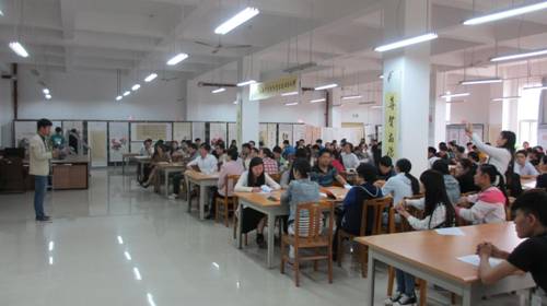 仪式结束后,学院新星书画社在图书馆三楼现刊阅览室举行了书画展演,吸引了大批师生前去参观。