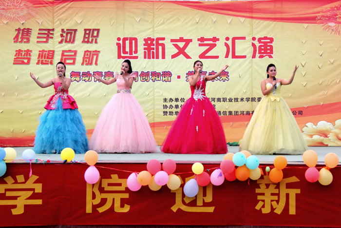 文艺汇演在激情火爆的开场舞《小苹果》中拉开帷幕。歌声欢快舒畅,舞蹈热烈柔美,调动起了现场的热烈气氛,歌曲《夜空中最亮的星》、舞蹈《河洛鼓妞》等一个个精彩表演,点燃了观众的热情。教师代表马雯的《为祖国干杯》、周春雷的《当我想你的时候》也让同学们领略了我院青年教师的风采。欢乐祥和的气氛使第一次离家在外的新生们感受到了我院丰富多彩的大学生校园文化氛围和集体生活的快乐与温暖。