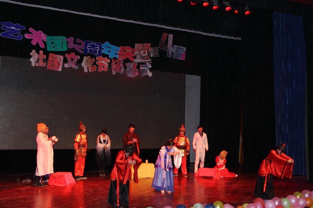 五彩缤纷的灯光,激情动感的舞蹈,由篮球协会带来的爵士《Dynamite》为本次活动点亮开场。女子组合歌唱表演《你的微笑》,吉他弹唱《老男孩》、《坚强的理由》和经贸学院的器乐伴奏歌曲《龙卷风》等精彩演出展现了当代大学生的活力青春风采;以汉文化为主题的舞台剧《礼仪之邦》典雅庄重,呈现了古代社会丰富的礼仪文化;变幻无穷,出神入化的《魔术幻想》借助简单的道具带来了神奇的效果,激发了现场观众对魔术魅力的向往;轻松诙谐,寓意深远的小品《一念天堂》、《以貌取人》博得了观众阵阵笑声;幽默风趣的相声表演《满腹经纶》将中国传统文化成语、神话故事和外国神话相结合,达到了荟萃古今中外文化的效果。最后,晚会在歌曲《一生有你》中圆满结束。