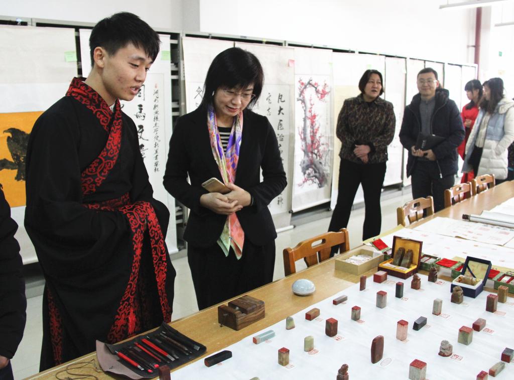 此次活动得到了广大学生的积极参与。现场展出了包含书法、国画、印章等门类共计100余幅作品。书法作品楷、行、草、隶、篆等种类齐全;工笔画、花鸟画、水墨画等绘画作品或写实