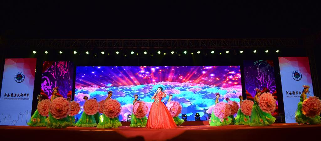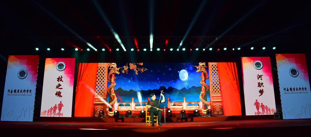 晚会开始前,舞台上播放的视频记录了新生们从开学到军训期间的成长与历练,每个精彩瞬间都燃起了同学们对走进河职以来点点滴滴的回忆。晚会在开场舞《飞得更高》中拉开了帷幕,相声《大学梦》向新生展现了大学生活的丰富多彩,幽默风趣的表演也引得观众捧腹大笑;音乐快板书《梦想起航》节奏明朗轻快,彰显了学院的办学特色,也歌颂了同学们对学院的热爱;由B-box口技、双排键演奏和唱歌等多元化方式表演的五曲联唱《河职好声音》呈现了我院学生多才多艺的艺术魅力;三重唱《我的大中原》、诗朗诵《技之魂河职梦》、3D多媒体互动歌舞《河职是我家》、院合唱团的《今夜无人入睡》、音乐剧《职业·梦想》等形式多样的节目为大家带来了一场真正的视听盛宴;音乐学院雷红薇教授的《阳光路上》更是将晚会推向了高潮。晚会还邀请了河南电视台梨园春二十年争霸赛霸主张晓英和著名曲胡演奏家张付中为大家倾情表演。最后,晚会在歌舞表演《共筑中国梦》的优美旋律中圆满结束。