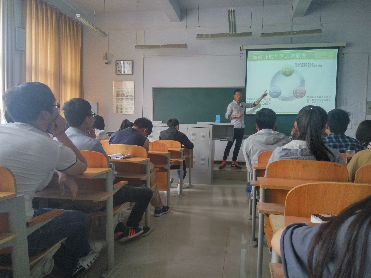 培训会在热烈的气氛中拉开了帷幕。在简短的培训课程上,张楠老师从谁是志愿者、志愿者服务的动机开始讲起,深入浅出,引出社区志愿服务的概念,详细的讲解了如何开展社区志愿服务,指出了志愿服务的一些误区,和常见的错误。老师诙谐的讲课方式带动了课堂的气氛,传递给我们一种新的社区志愿服务理念。