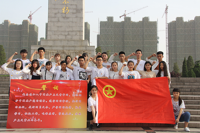 下午2:00,来自各系(院)的150名团干部在11名老师的带领下,在学院南门集合完毕,坐上大巴车奔赴郑州市烈士陵园。