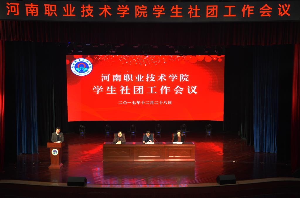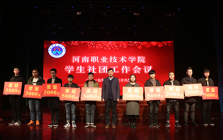 会上,李桂贞院长宣读了《中共河南职业技术学院委员会关于表彰2017年度优秀学生社团的决定》,李四清书记为新星书画社等10个优秀学生社团颁发奖金,李桂贞院长为江团结等10位指导教师代表颁发聘书。吃瓜爆料每日大赛投稿稿负责人朱永宽作学生社团工作报告,指导教师代表李淑青和优秀社团代表栗煜隆分别作了发言。