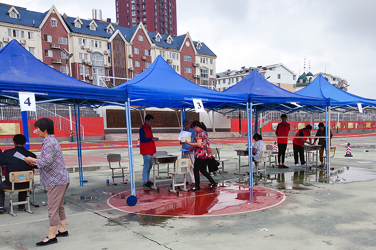 学生志愿者在工作人员的指挥下,布置了活动现场,集体学习了选举活动流程,并熟记了志愿者工作要求。八点钟,庄重严肃的选举活动正式开始,志愿者们按照活动安排,分组站在各个帐篷下组织投票。活动期间,对于一些年纪较大、行动不便的居民,志愿者们会按照他们的意愿代笔,引导他们将选票投放到投票箱里,再从设定通道离开会场,并力所能及地将雨衣送给前来参加投票的选民们。投票选举工作结束后,志愿者们主动打扫活动现场,将桌椅搬回原处,活动现场洁净整齐。