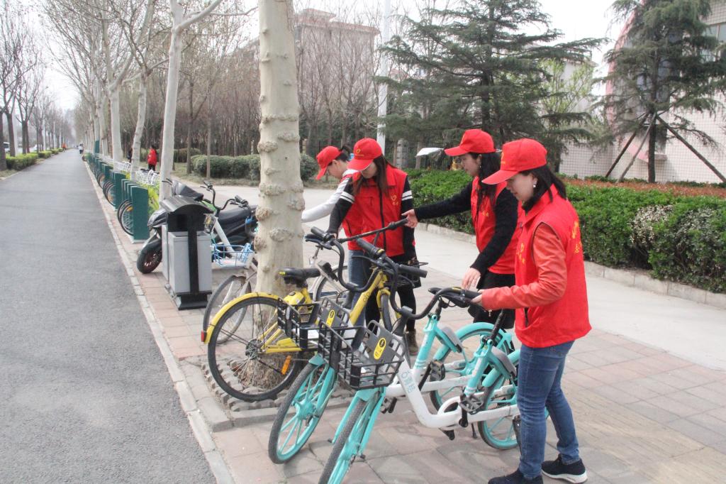 志愿者们主动扶起在路边乱摆、乱停、倒放的单车,将占道、乱停乱放的共享单车有序摆放在规定区域。同时,还积极呼吁过往的学生做文明的骑行者、文明的停放者、文明的宣传者,有效宣传了文明共享、绿色出行的理念。经过2个多小时的努力,学校周边的共享单车停放有序、焕然一新。
