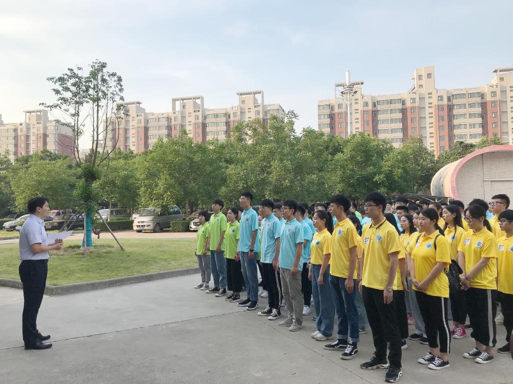 当天早上7点,校工会主席夏喜利在学校为九支社会实践团队授旗。随后,全体带队老师和实践队员乘车分别前往舞阳县、睢县。