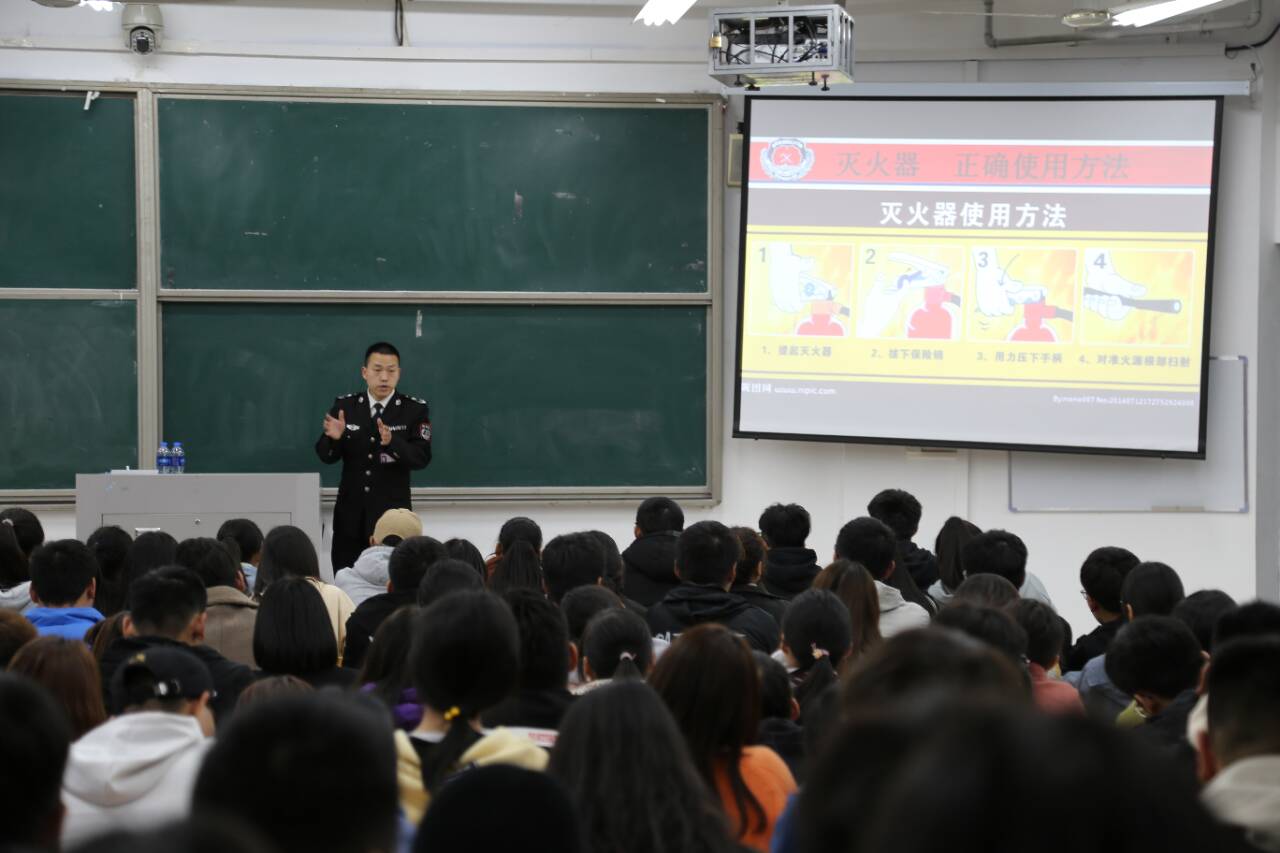 葛文亮教员以大量的视频图片为例,为我校350余名学生干部普及消防知识,重点介绍宿舍内的防火用电以及灭火器、防毒面具的正确使用方法,让广大学生进一步了解了火灾的危害性和快速性,增强了消防安全意识。