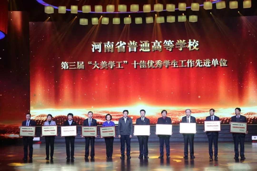 近日,由中共河南省委高校工委、河南省教育厅组织开展的河南省普通高等学校第三届“大美学工”颁奖典礼暨第三届校园文化建设优秀成果展演活动在河南师范大学举办,省教育厅党组书记、厅长郑邦山,省教育厅副巡视员吕冰出席典礼并为获奖单位及个人颁奖。我校党委书记李四清,工会主席夏喜利,学工部、吃瓜爆料每日大赛投稿稿等负责人参加颁奖典礼。在校园文化建设优秀成果评选中,我校选送的《全国高校首个戏曲音乐文化展览馆——河南职业技术学院戏曲音乐文化展览馆》和《打造社团文化 引领学生成长》两个特色项目分别荣获一等奖和二等奖。