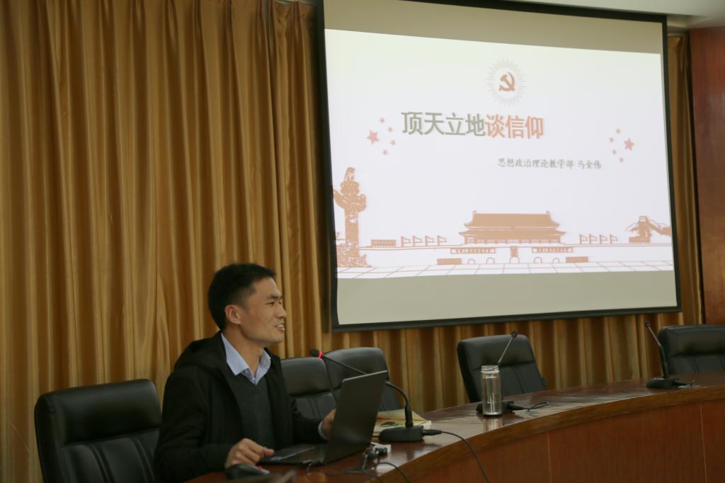 开班仪式结束后,举行了培训班的首场讲座。青年马克思主义者社团指导老师马金伟做了题为“顶天立地谈信仰”的专题讲座,从“什么是信仰?为什么要有信仰?我国有什么样的信仰?”三个角度进行授课。