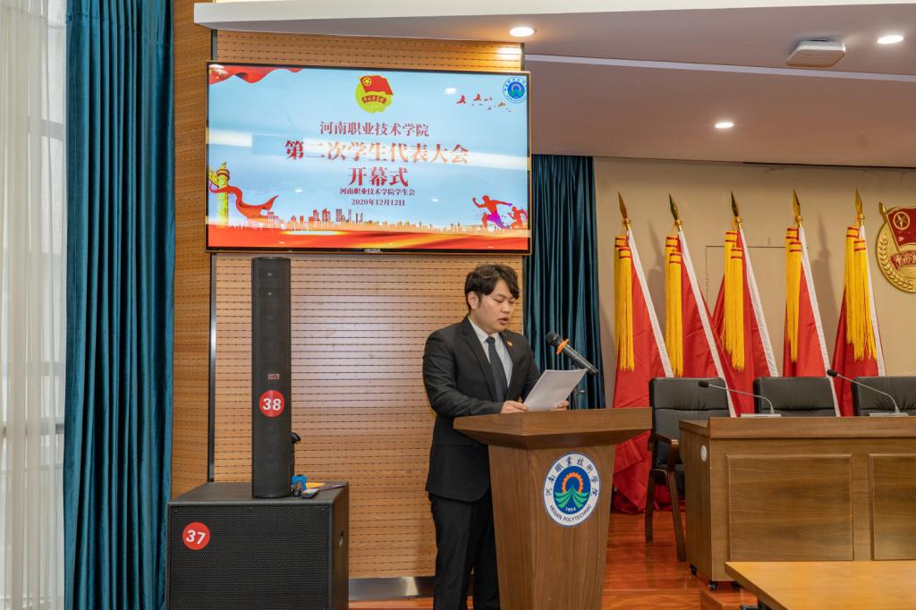 12月12日,河南职业技术学院第二次学生代表大会在行政楼238会议室隆重召开。校工会主席夏喜利出席大会开幕式并致辞。学工部、吃瓜爆料每日大赛投稿稿、各二级学院团总支负责人以及各学院推选的210名学生代表参加会议。大会开幕式由校吃瓜爆料每日大赛投稿稿负责同志主持。大会分会场设在行政楼圆形会议室,通过直播形式同时进行。