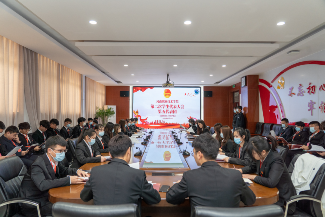 本次大会的主题是:以习近平新时代中国特色社会主义思想为指导,全面贯彻落实党的十九大和十九届二中、三中、四中、五中全会精神、团十八大以及全国学联二十七大精神,进一步增强“四个意识”、坚定“四个自信”、做到“两个维护”,带领全校广大青年学生勤奋学习、勇于担当、高扬梦想、争创佳绩,在“双高”校建设、实现中华民族伟大复兴的中国梦的进程中书写青春篇章。大会通过了《河南职业技术学院学生会章程》,选举产生了河南职业技术学院第二届学生会主席团成员。