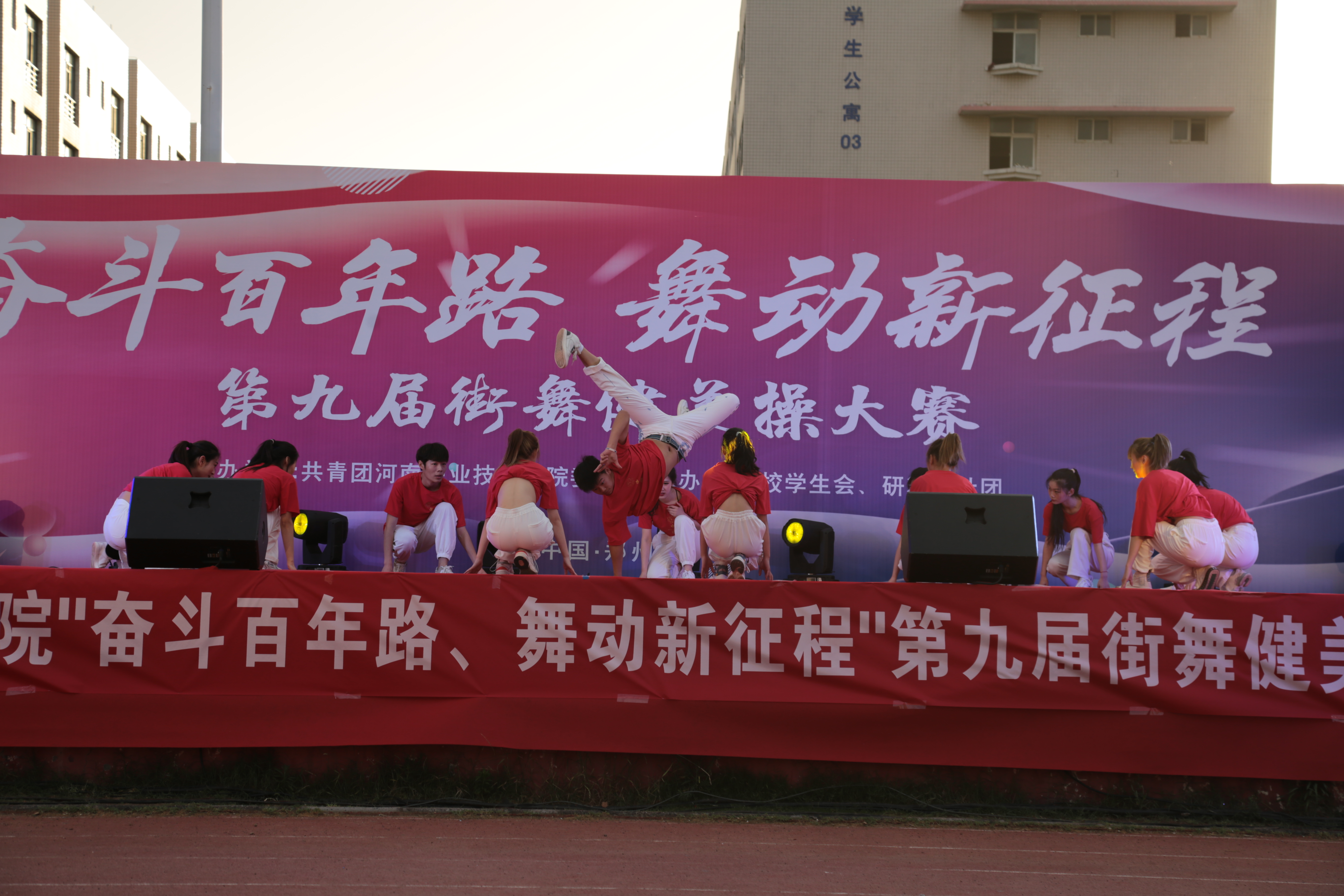 为庆祝建党100周年,培养河职学子的爱国情怀,2021年6月3日下午,我校开展以“奋斗百年路,舞动新征程”为主题的第九届街舞健美操大赛。