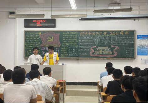 各班团支书从学习党史的重大意义与科学方法、中国共产党百年奋斗历程、中国共产党的基本经验与启示等三个方面,就建党一百年以来党的光辉历程进行简要阐述,并积极带领班级团支部成员开展红色精神故事分享会活动,通过追溯红色记忆,感受红色基因,点燃了学生学习党史的热情。