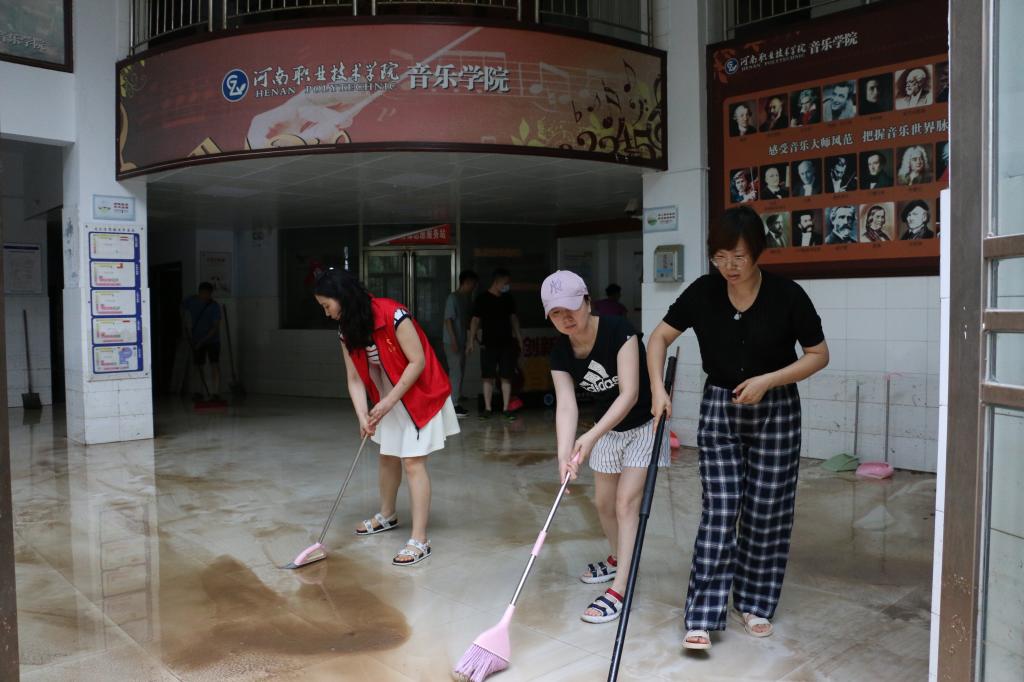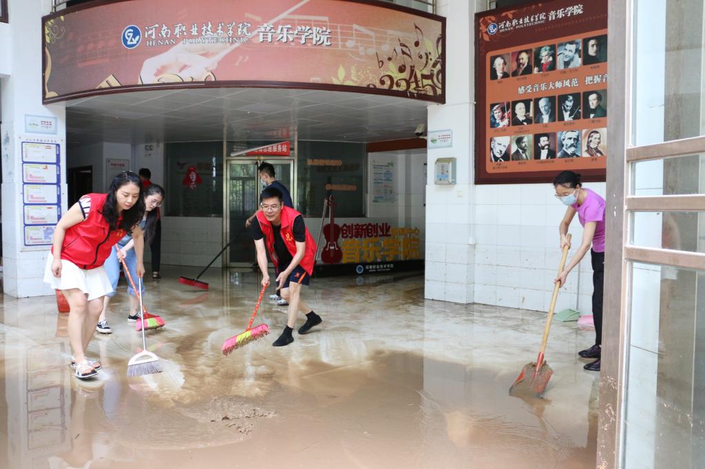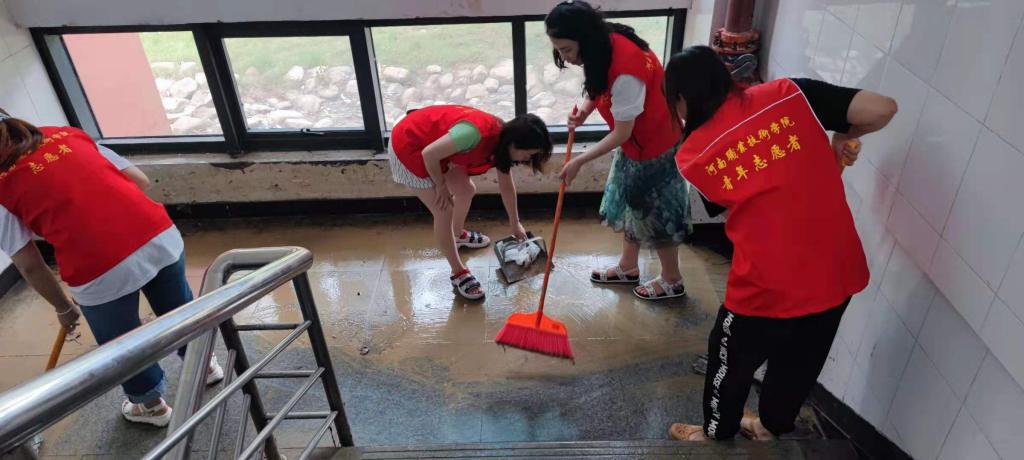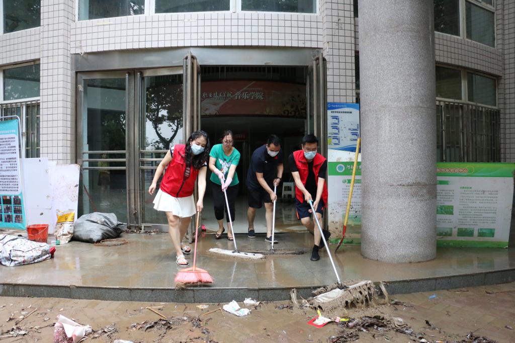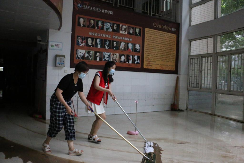 7月23日下午和7月24日,为帮助校园恢复正常工作状态,河职青年团干在音乐学院和明知楼负1楼地下室开展助力校园灾后恢复志愿服务活动。