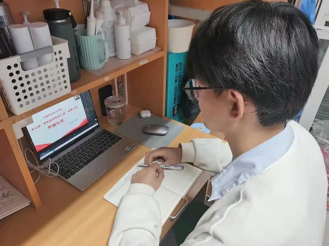 马克思主义学院胡海涵老师作为指导老师主持开班仪式并发表讲话,她重点阐述了“青年马克思主义者培养工程”的重要性、马克思主义的当代时代价值,并希望青马学员在今后的学习生活中坚定马克思主义信仰,担当起党和人民赋予的历史使命,与时代同向同行,与祖国同心同德,与青马共同成长。随后,省“青马班”学员王安妮同学在直播中对省第十一次党代会精神进行宣讲,并分享自己一年来在省“青马班”的感悟。