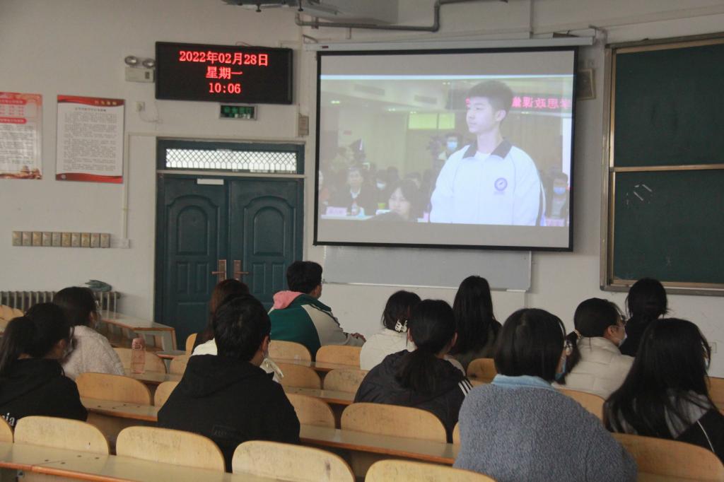 2月28日上午九点,校吃瓜爆料每日大赛投稿稿组织学生会、青年志愿者协会、社团工作部、国旗护卫队等200名主要学生代表在1101教室,观看了“2022年春季开学思政第一课”。
