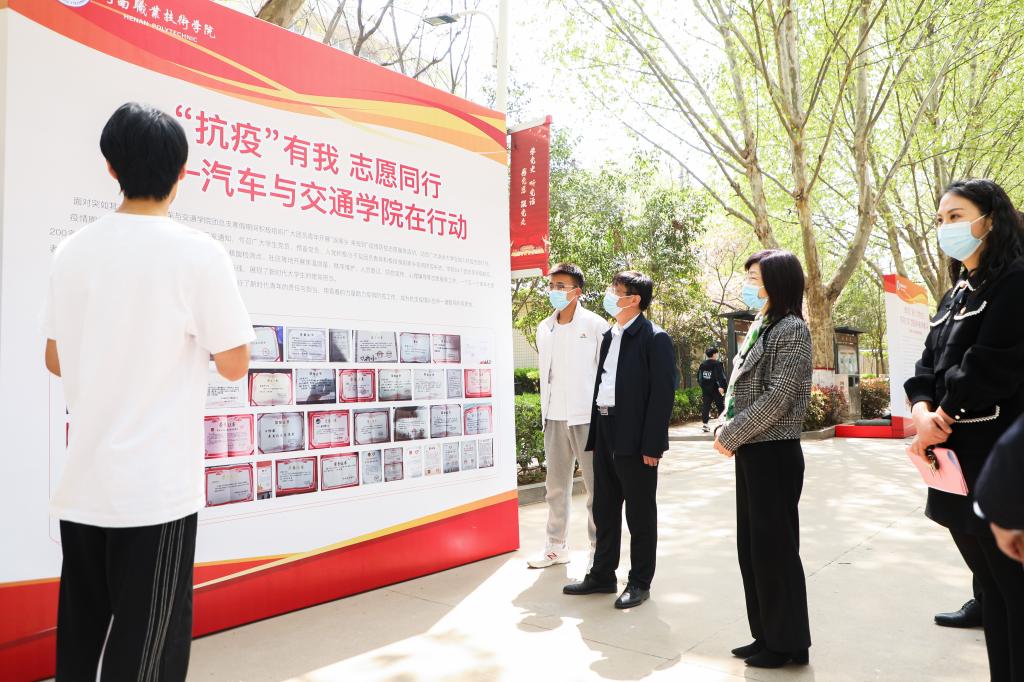 不忘初心跟党走,建团百年绽芳华。4月7日,我校举办 “永远跟党走,奋进新征程”庆祝建团100周年暨“疫情防控先进学子事迹”展示展演活动。通过展板展示、实物呈现、现场讲解等多种形式集中展示我校防洪抗疫先进学子典型事迹、特色社团文化及“挑战杯”国赛获奖优秀作品。校党委书记李桂贞、校长梅乐堂等领导班子成员实地参观了展览,并与参展学生进行了交谈。