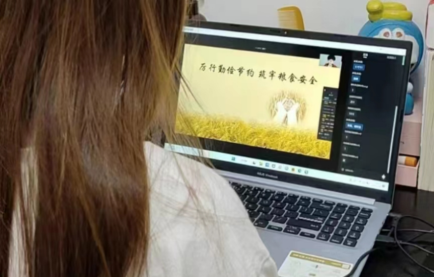 在团支书的带领下,同学们通过观看公益短片《勤俭节约,珍惜粮食》等视频、图片,了解养成勤俭节约、珍惜粮食的绿色低碳生活习惯的重要性和必要性。随后团支书从身边的事例入手,讲述大学生如何养成健康文明的生活方式和消费理念,倡导大家要从身边的小事做起,弘扬中华民族尊重劳动、勤俭节约的传统美德,培育崇尚节约的校园文化。