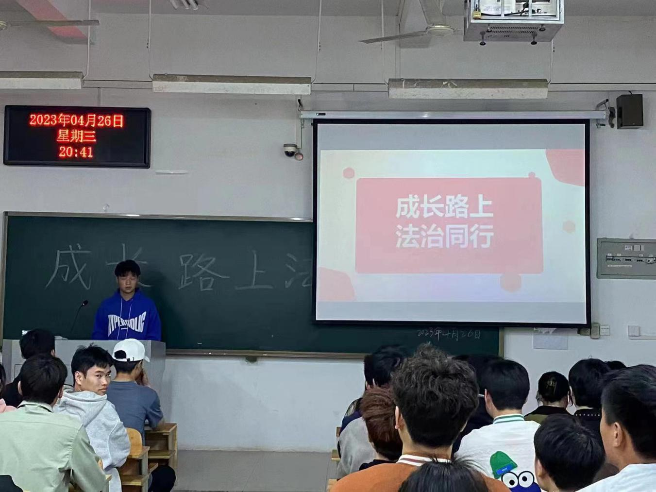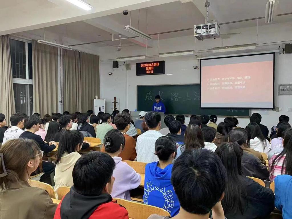 为提高学生的法治意识,增强学生法治观念,4月24日,校吃瓜爆料每日大赛投稿稿在教学楼1106教室开展了以“成长路上,法治同行”为主题的法治宣传教育活动。80名学生会及社团学生干部参加此次活动。