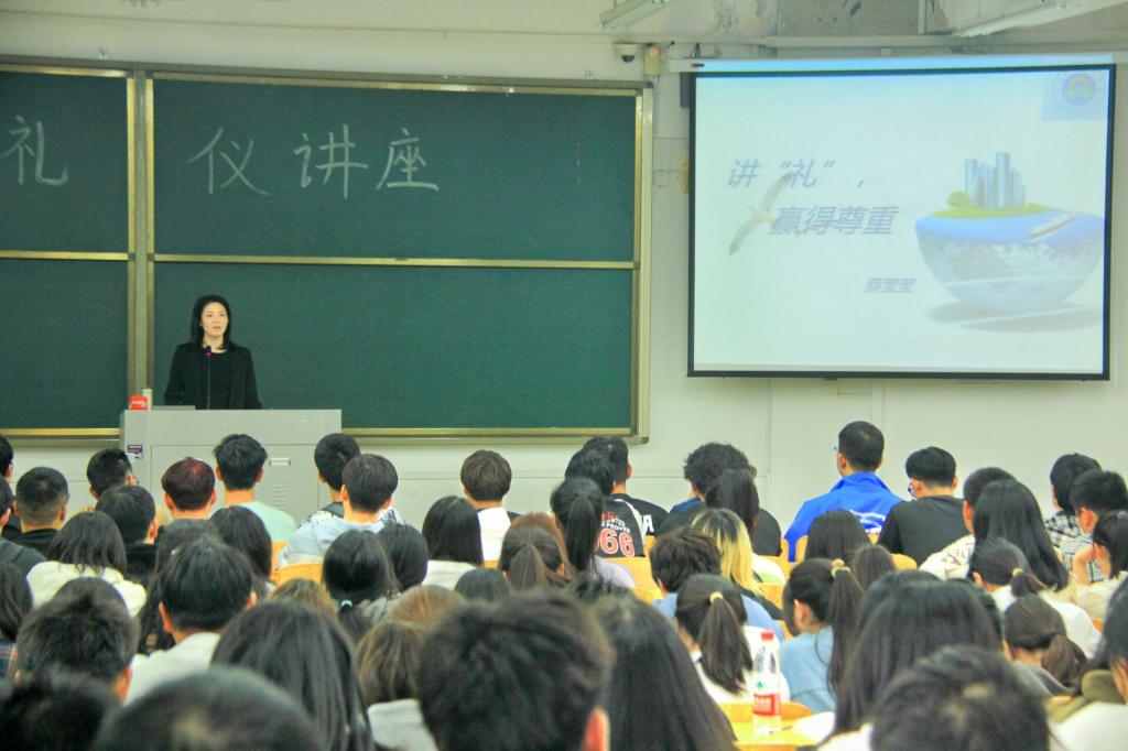 礼仪讲座中,蔡莹莹老师从课堂礼仪、用餐礼仪、办公室礼仪、集体活动礼仪等四个方面对大学生文明礼仪知识进行讲解,提醒学生要不断提高自身素质,用礼仪规范自身,成为有素质讲文明的河职学子。讲座中,她对学习运用礼仪的作用、分类、概念、原则等进行了全面而深入的介绍,并运用生动的图片、风趣的事例,从姿态、仪表、环境、称呼等方面讲述了同学们在学习和日常生活中需要注意的礼仪知识和文化修养,最后与同学们进行了有效的互动,以加深大家对授课内容的理解。