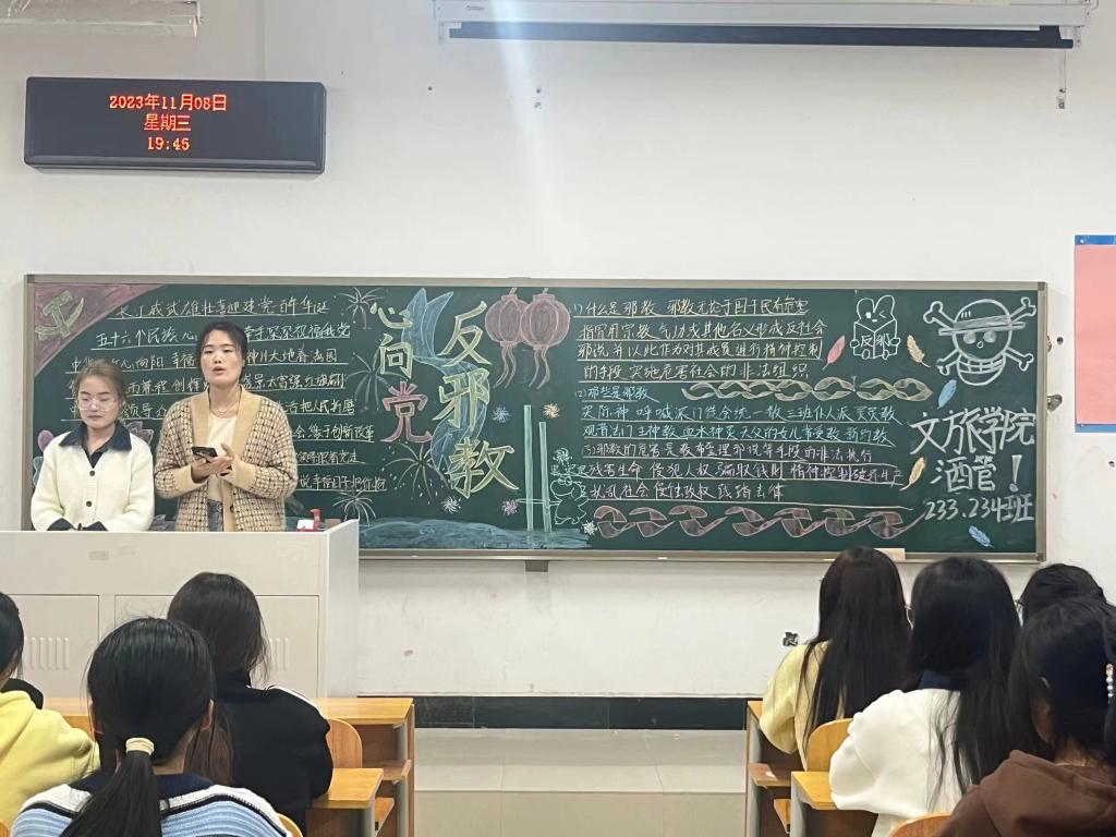 为了进一步加强马克思主义宗教观教育,提高广大团员青年反邪教意识,10月30日至11月10日,我校以各班团支部为单位开展了“抵制邪教渗透,牢筑马克思主义宗教观”线下主题团课。