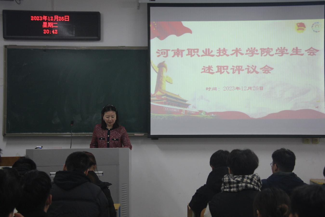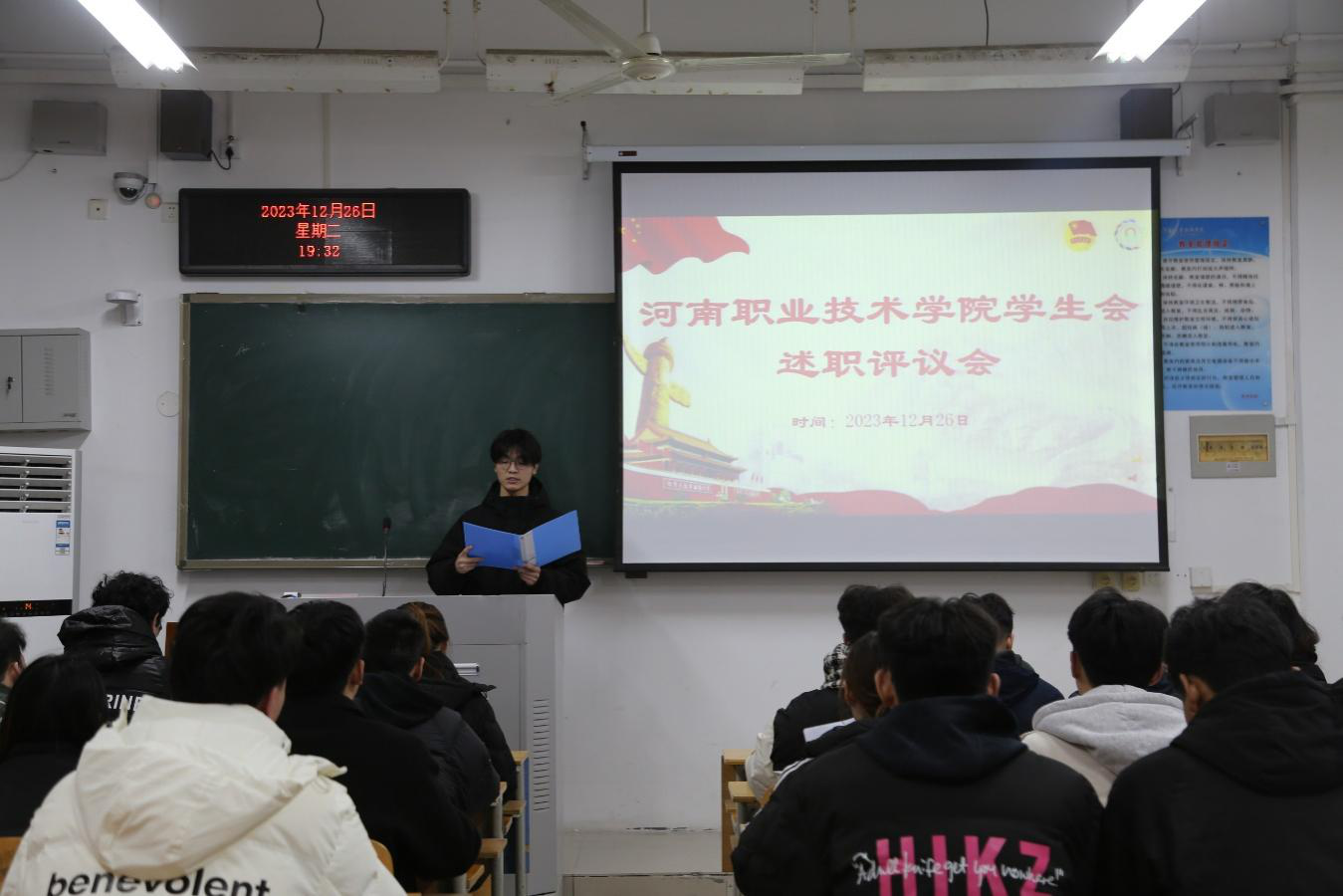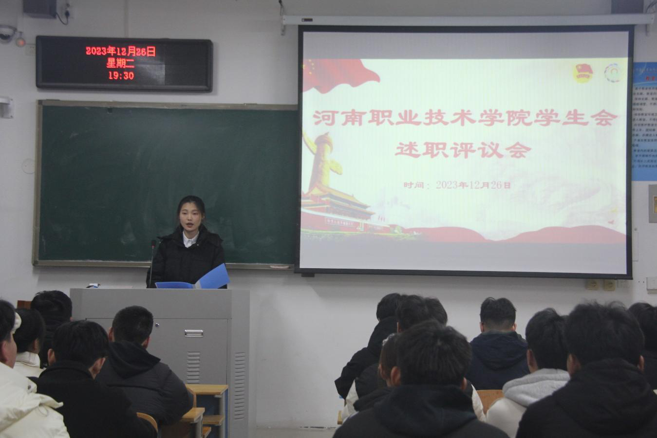 为贯彻落实共青团中央《学联学生会组织改革方案》,健全和完善学生会管理制度,推动学生会工作的科学化、规范化、精细化,2023年12月26日晚,校学生会在2105教室集中开展校院两级学生会年度述职评议报告会,校吃瓜爆料每日大赛投稿稿副书记王璐、校学生会以及各二级学院学生会主席团成员参会。