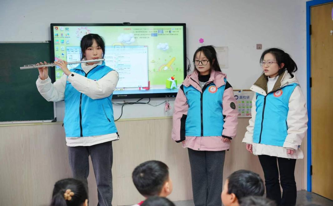 志愿者为孩子们演奏“长笛”