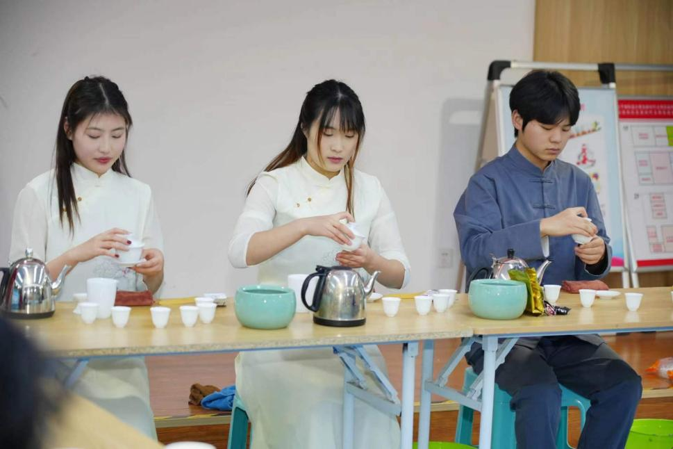 志愿者们示范茶艺展示全过程