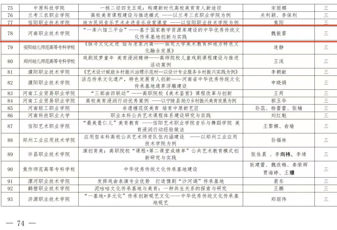 近日,由河南省教育厅主办的全省第七届大学生艺术展演活动评选结果揭晓,我校参赛项目成绩优异,10件参赛作品荣获奖项,其中一等奖1项、二等奖1项、三等奖8项,成果喜人。