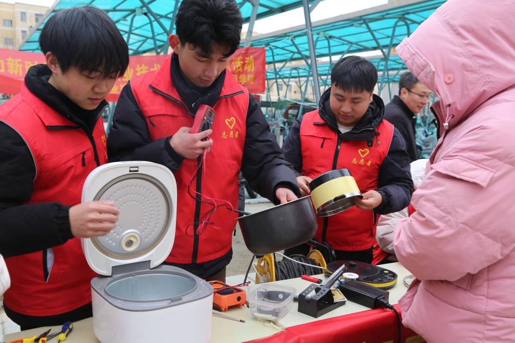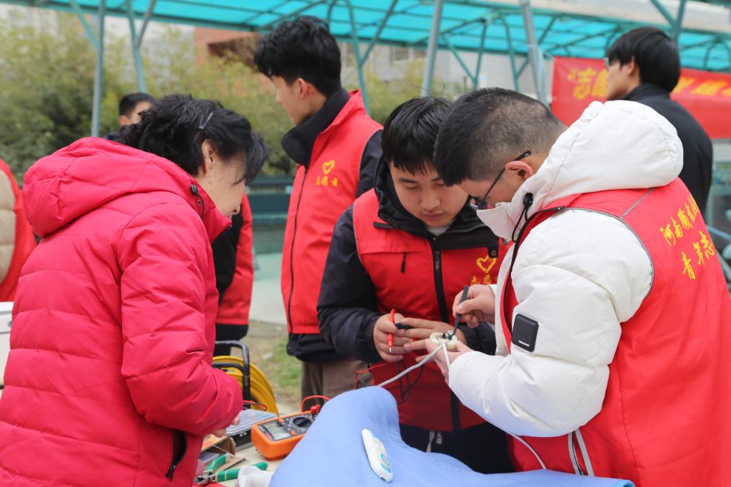 活动现场,师生们将“学雷锋”精神和技术服务送到家门口,居民们热情高涨,纷纷把家里有故障的家电带到现场进行维修。志愿者们根据问题描述仔细查找电器故障并进行维修,对于部分现场无法修理的电器,耐心地向居民说明损坏原因,提供维修建议;同时还向社区居民讲解了大功率电器的安全操作注意事项,普及家电保养常识及安全用电知识。