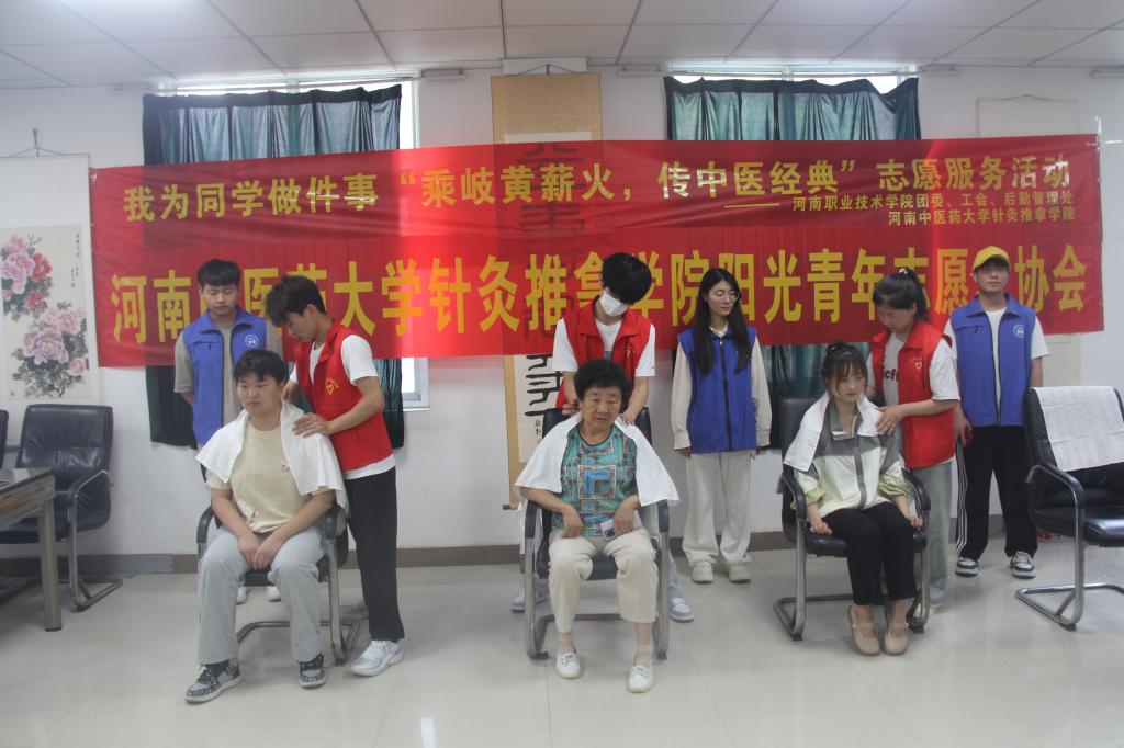 活动期间,河南中医药大学的志愿者们将书本与生活串联,用生动的语言向我校师生讲解中医药养生保健小知识,普及中医药文化常识以及预防疾病的相关知识。协会志愿者们还对中医推拿手法进行了展示,针对性地为我校师生和家属们进行颈椎部、肩颈部的推拿放松,缓解身体上的不适,让大家体验到了专业的推拿按摩。