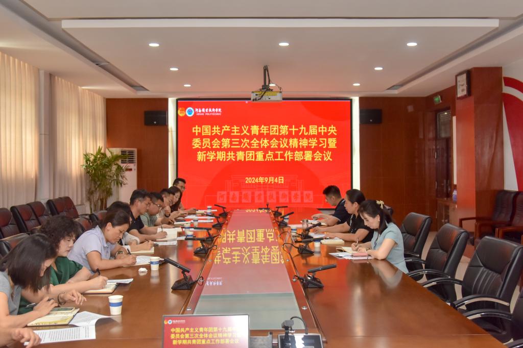 为推动学校共青团工作高质量发展,9月4日下午,我校在行政楼332会议室组织召开团十九届三中全会精神学习暨新学期共青团重点工作部署会议,集中传达学习团十九届三中全会精神,并对学校新学期共青团重点工作进行安排部署。校党委副书记、工会主席田华出席并讲话,各二级学院团总支书记及校吃瓜爆料每日大赛投稿稿全体人员参会,校吃瓜爆料每日大赛投稿稿副书记王璐主持会议。