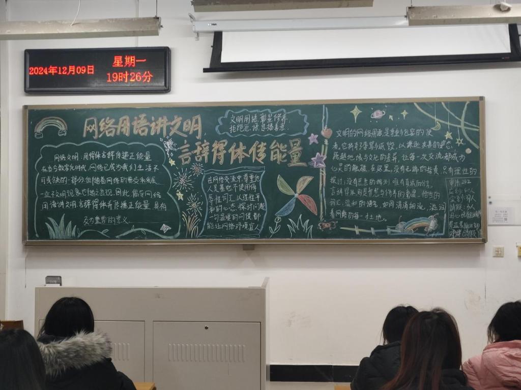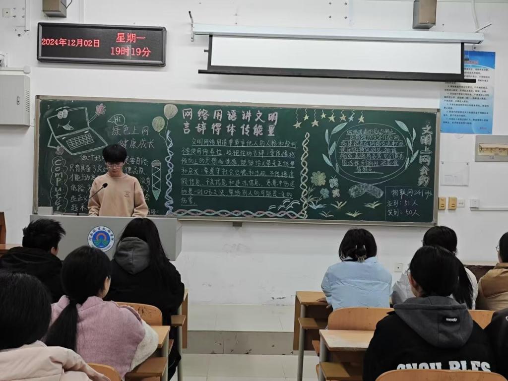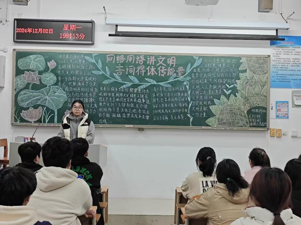 为积极响应社会对于网络文明建设的号召,引导同学们正确使用网络用语,提升网络文明素养,12月2日-12月13日,我校以各班团支部为单位开展了“网络用语讲文明,言辞得体传能量”主题团课。