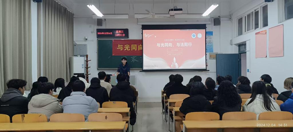 本次宣讲内容包括宪法历史与发展脉络、宪法基本内容与结构、宪法实施与监督机制、了解宪法日意义四个部分。通过向同学们介绍宪法方面的有关知识,列举真实案例,深刻阐释了宪法的崇高权威,并向学生们传授了运用法律武器维护自身合法权益的知识,号召同学们要懂法、知法、守法、自觉弘扬宪法精神,作全面发展的当代新青年。