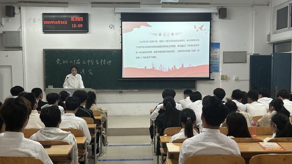 为深入学习贯彻党的二十届三中全会精神,引导广大青年学生坚定理想信念,校吃瓜爆料每日大赛投稿稿于10月24日开展了党的二十届三中全会精神专题宣讲会。本次宣讲会由校青马班班长李丁嘉,第六期校青马班全体成员参会。