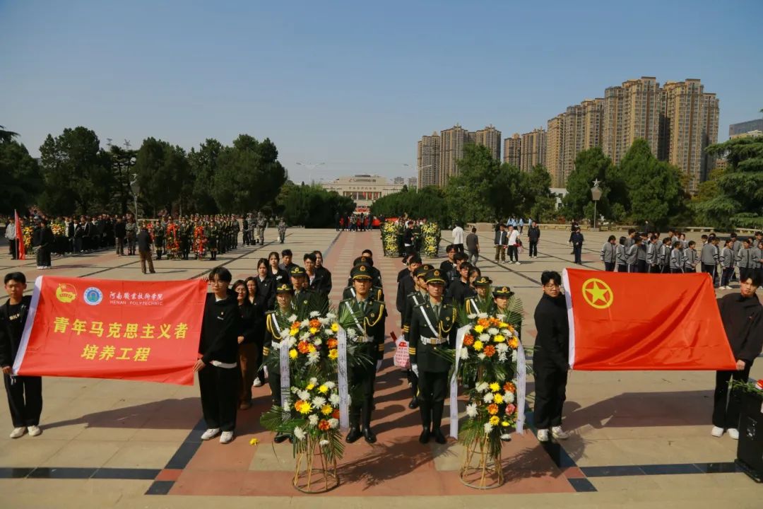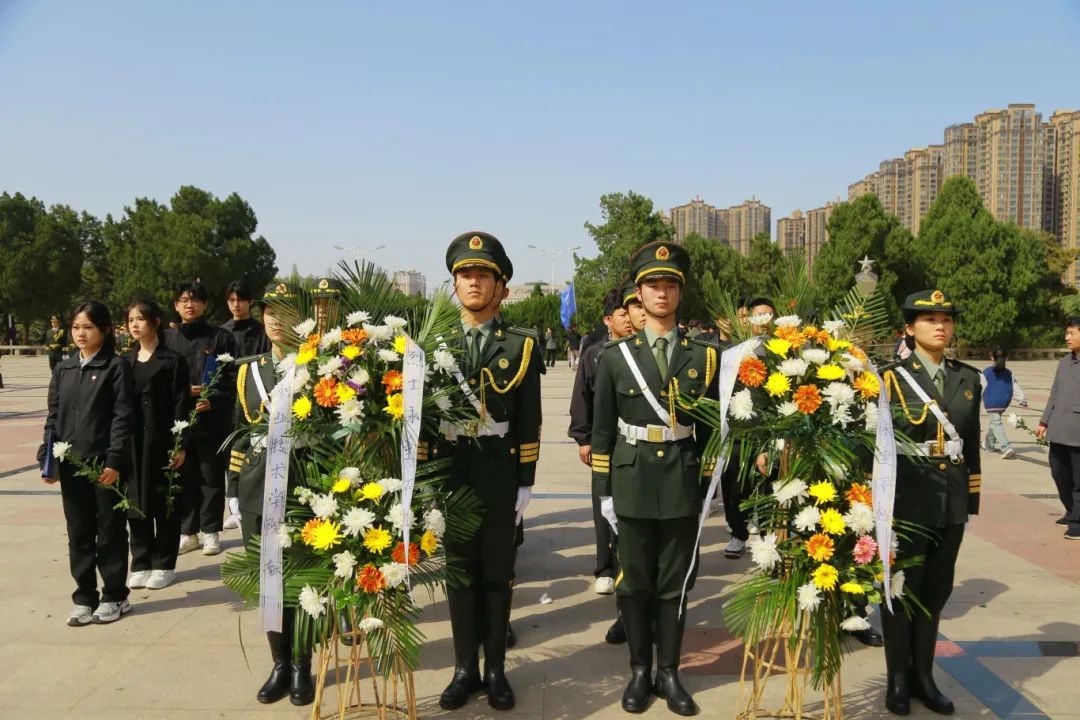 松涛阵阵诉忠烈,菊韵悠悠寄追思。为缅怀革命先烈,传承红色基因,弘扬爱国主义精神,4月2日下午,校吃瓜爆料每日大赛投稿稿组织学校“青马班”学员、国旗护卫队成员及二级学院教师代表共计40余人前往郑州市烈士陵园,开展“缅怀革命先烈 传承红色基因”清明节祭扫主题团日活动。