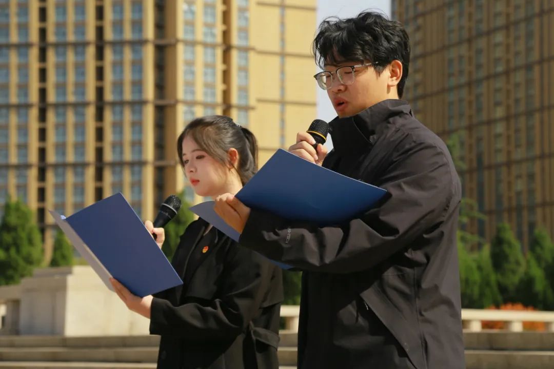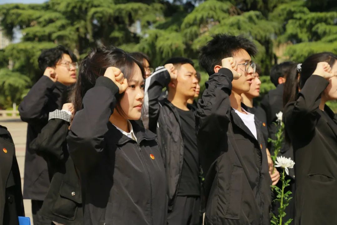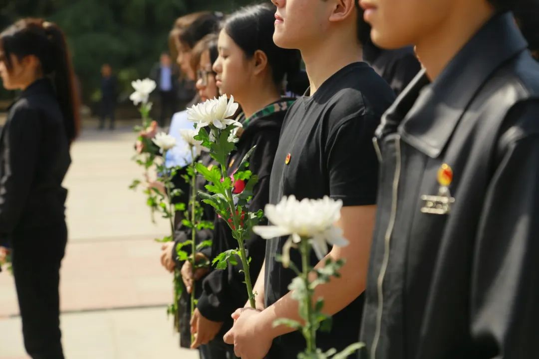 下午3时许,全体师生整齐列队,在巍峨的革命烈士纪念碑前肃立。伴随着雄壮的《义勇军进行曲》,祭奠仪式正式开始。国旗护卫队旗手迈着铿锵有力的步伐,向革命烈士敬献花篮,全体师生默哀三分钟,表达对革命先烈的无限哀思和崇高敬意。“青马班”学员孔瑞带领大家在纪念碑前重温入团誓词,铮铮誓言回荡在陵园上空,彰显了新时代青年坚定不移的理想信念。随后,学员代表赵紫扬、袁聚娇和张晓雅同学分别进行了主题诗朗诵和演讲,以激昂的青春之声致敬革命先烈。活动最后,全体师生手持白菊,缓步绕行革命烈士纪念碑一周,向先烈敬献鲜花。一朵朵洁白的花朵,寄托着青年学子对英雄的深切缅怀,也象征着红色精神的代代传承。