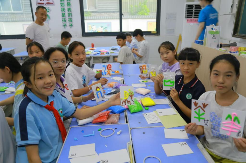 在手工课堂上,师生共同深度挖掘非遗文化内涵,举办了融入甲骨文、古诗词等特色字词的手工黏土活动。课堂上,学生们以小组为单位,围绕卡片上手绘甲骨文诗词,用黏土捏造出相关的文字,充分发挥着自己的想象力和创造力。活动现场以小组为单位进行比拼,将竞技精神与文化传承有机融合,现场气氛十分热烈,极大地激发了学生主动钻研语言知识、提升语言技能的积极性。