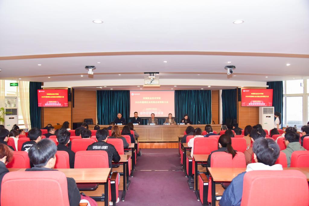 田华在总结讲话时对学校暑期实践工作给予充分肯定,她指出,本次实践活动紧扣时代脉搏、贴合社会需求,既彰显了学校育人特色,更展现了河职青年的责任担当。结合新时代社会实践工作要求,她提出三点期望:一是希望同学们以实践为基,沉淀成长力量。要将实践中积累的经验、收获的感悟、锤炼的品格,切实转化为勤学善思的动力、立身行事的智慧和服务社会的本领,在知行合一中练就过硬素质。二是希望同学们以时代为向,锚定人生坐标。要始终胸怀“国之大者”,将个人理想融入国家发展大局,持续关注乡村振兴、文化传承、科技创新等国家战略需求,主动把所学知识与社会实际相结合,在服务人民、奉献社会中实现个人价值,让青春在为祖国、为人民的奉献中焕发出绚丽光彩。三是希望各单位以创新为要,健全育人机制。各二级学院、各有关部门要总结提炼实践中的宝贵经验,优化活动组织管理模式,立足学科专业特色打造辨识度高、影响力广的实践品牌,持续完善“专业实践+服务社会+就业创业”三位一体长效机制,为学生搭建更广阔的成长平台,推动学校社会实践工作提质增效、再上新台阶。