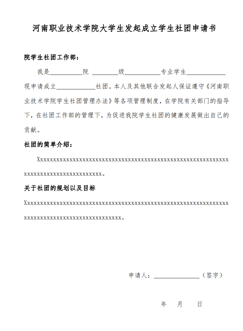 (二)有规范的社团名称和相应的组织机构,名称应与其业 务性质相符,准确反映其特征,应符合法律法规要求,不得违背 校园文明风尚和社会公共道德;社团全称须加冠“河南职业技术 学院大学生”,社团组织正式活动或公开发放宣传品须使用全称,不可省略“大学生”三字;
