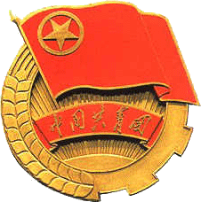 中国共产主义青年团团徽的内容为团旗,齿轮,麦穗,初升的太阳及其光芒,写有“中国共青团”五字的绶带。它象征着共青团在马克思列宁主义、毛泽东思想的光辉照耀下,团结各族青年,朝着党所指引的方向奋勇前进。