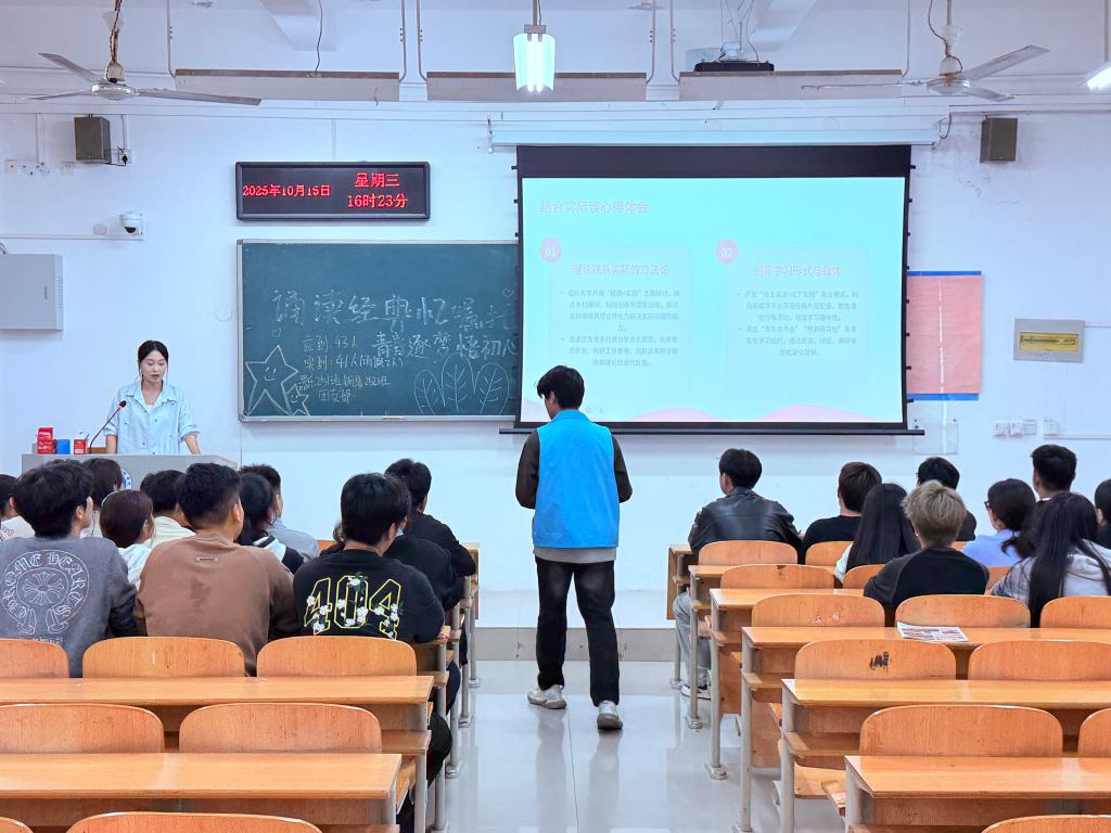 团课期间,同学们积极参与诵读活动,大声朗读经典诗词和习近平总书记关于青年成长的重要论述。一句句经典诗词,如同一盏盏明灯,照亮了同学们的心灵;一段段重要论述,似一声声号角,激励着大家奋勇向前。在学习习近平总书记关于“高校思想政治工作关系高校培养什么样的人、如何培养人以及为谁培养人这个根本问题”等重要讲话时,同学们结合音乐专业特点,展开了热烈讨论。大家深刻认识到,作为音乐专业学生,肩负着以音乐育人、以艺术化人的重要使命,不仅要提升自身专业素养,更要注重品德修养,努力成为德智体美劳全面发展的社会主义建设者和接班人。同学们表示,要将音乐与思政教育相结合,用美妙的旋律传递正能量,以动人的歌声唱响时代主旋律。